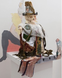 Figure 6: Simon Fujiwara, Syphilitic Comrades (Lautrec), found objects, skeleton, antique fabric, digital print on plexiglass, metal mesh, paper, paint, 43 x 52 x 90 cm, 2020